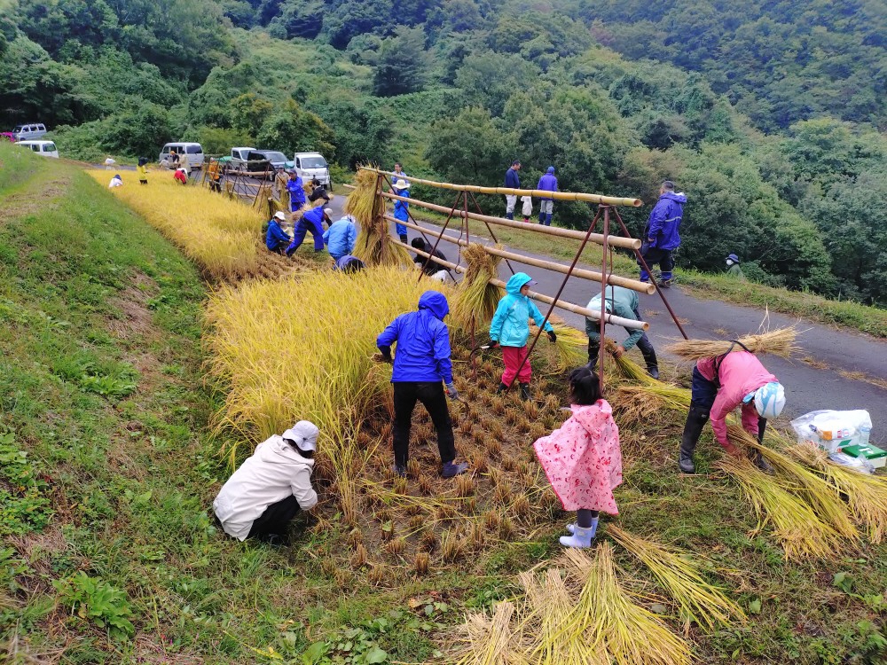 10月12日(日)小倉の千枚田で「トキの島小倉千枚田農園」オーナー稲刈りイベントが開催されました。